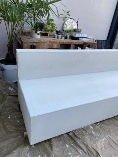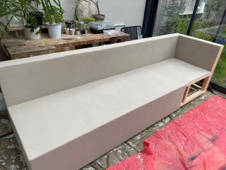Na een geduldig klusje is de tuinbank eindelijk af. En wat zijn we hier toch ontzettend blij mee :). Kijk nu eens wat een mooie kleur en de afwerking. Het heeft echt die betonlook die ik wilde bereiken.