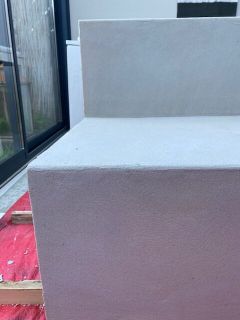 Vervolgens bevestig je het gaas (wat meegeleverd wordt met de uitvlakmortel) maak je alles vlak met de uitvlakmortel. Deze uitvlakmortel kun je bij bestellen bij Beton Cire Nederland. Vraag even na of dit voor jouw project ook nodig is. Omdat wij hoeken en naden hebben in de tuinbank was het aan te raden om dit te doen. Je wilt niet dat je straks daar spijt van hebt als het bijvoorbeeld gaat vriezen of heel erg warm wordt en je dan alsnog scheuren krijgt.