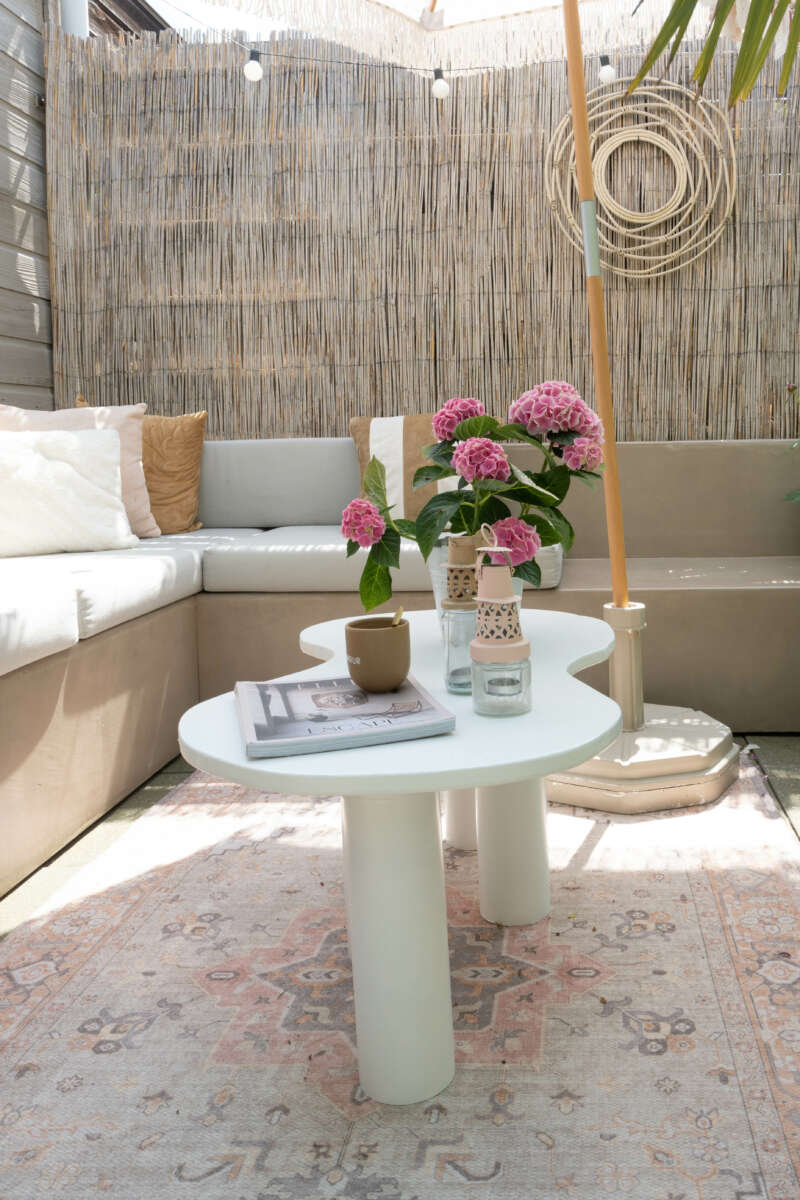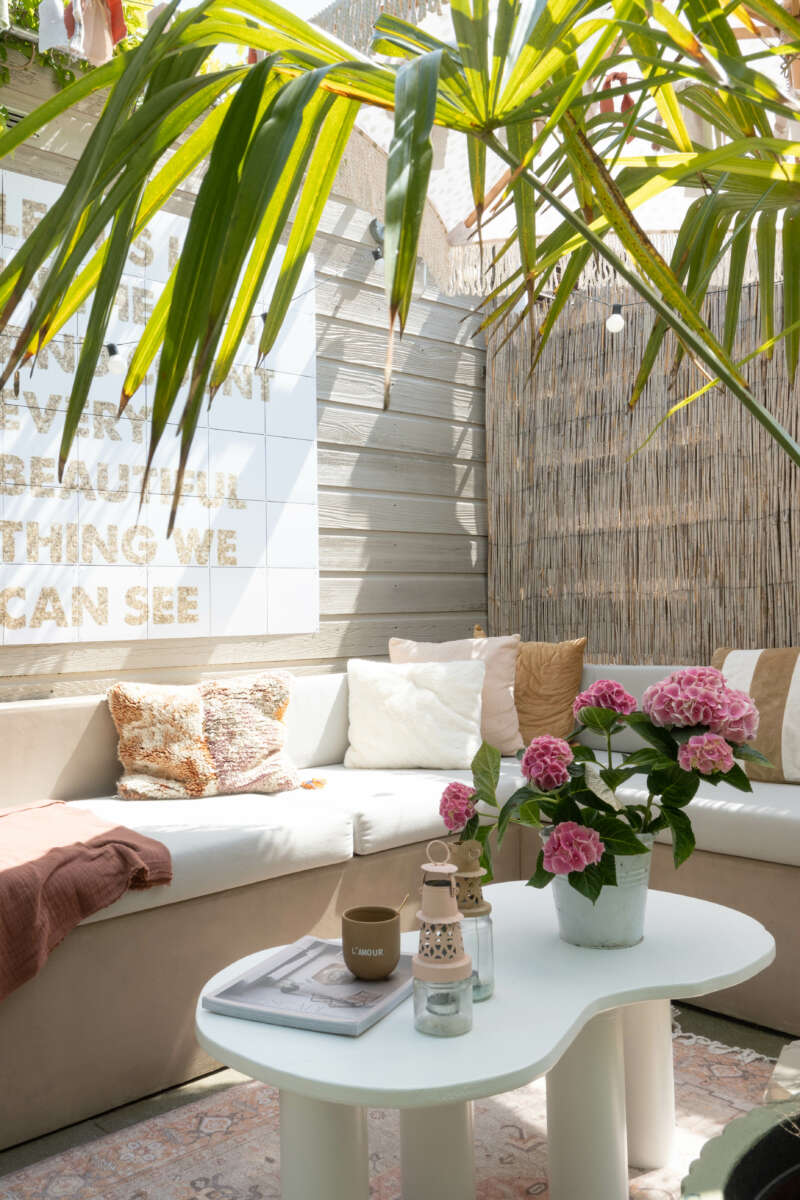 DIY bijzettafel voor buiten in de tuin. Een bijzettafel voor buiten in de tuin, onmisbaar wat mij betreft. Het is toch wel fijn om een tafeltje bij de bank buiten te hebben staan. Waar je even de koffie op kunt zetten of een fijne borrelplank voor in het weekend. Als het even kan zitten wij buiten in de tuin. En met het mooie weer is het hier geen straf om buiten te zitten. De hoekbank hebben wij jaren geleden ook zelf gemaakt door middel van het DIY met betonciré. Je kunt de blog hier nog even terug lezen.