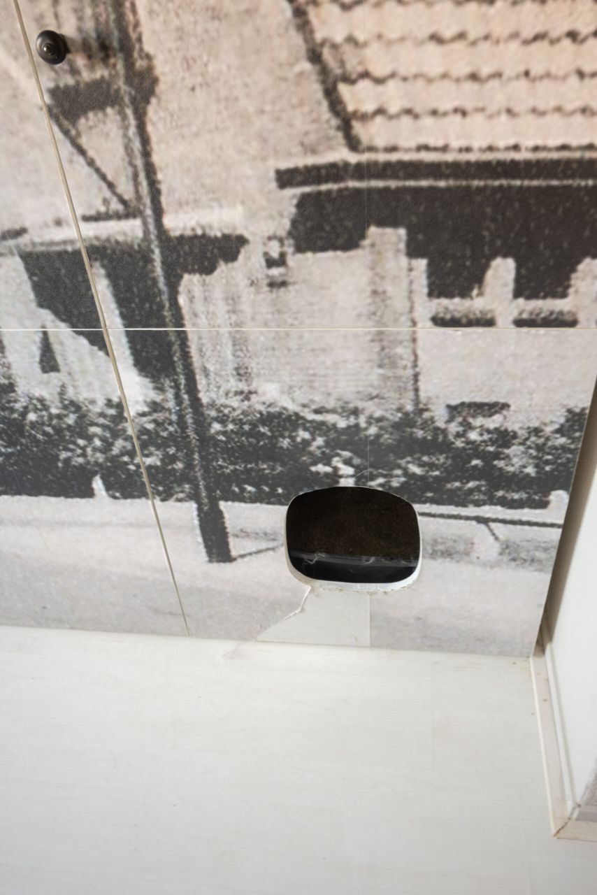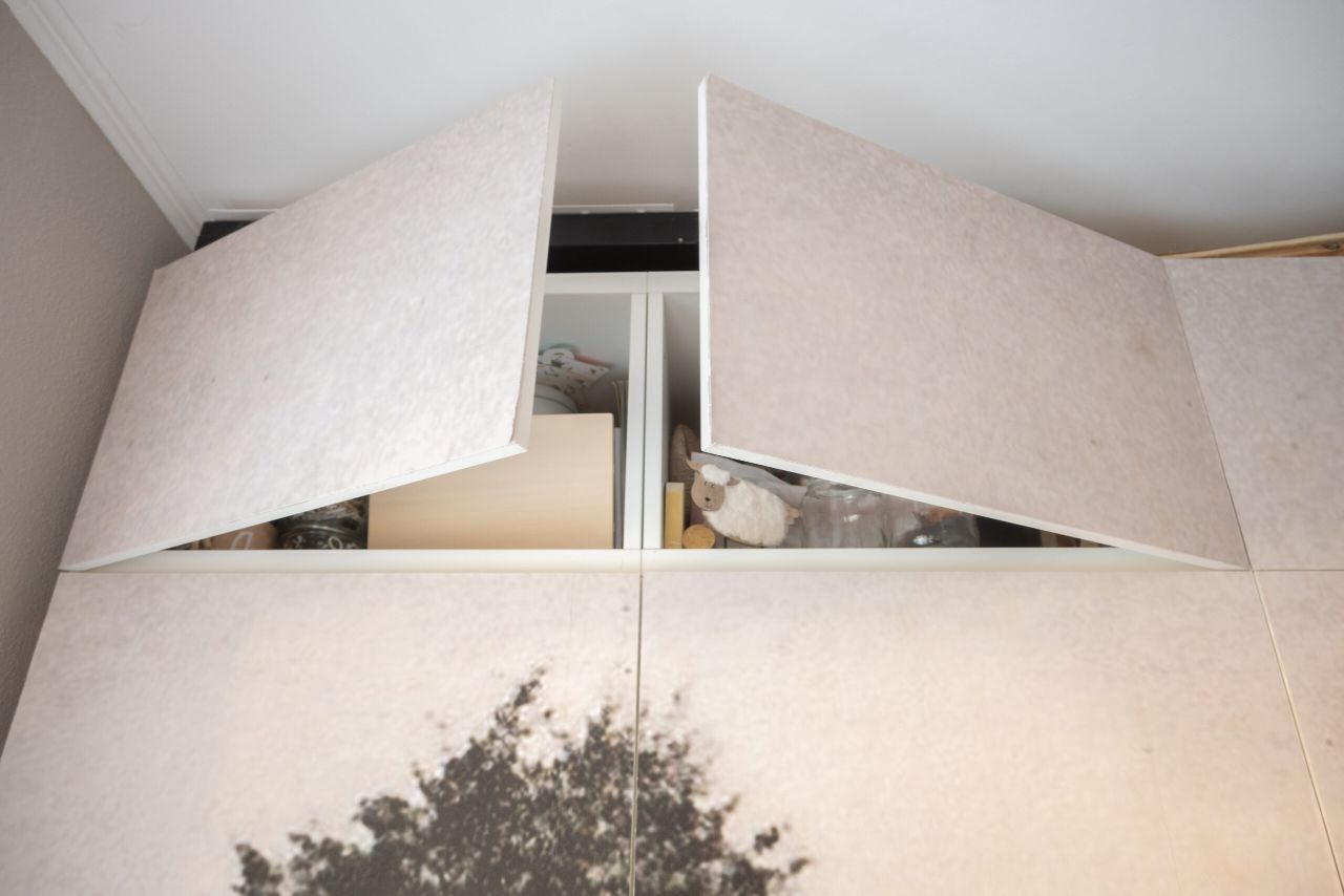 Je kunt fotobehang precies op maat bestellen. Dat hebben wij ook gedaan. De omvang van de kast gemeten en de foto laten afdrukken op behang precies in deze maat.