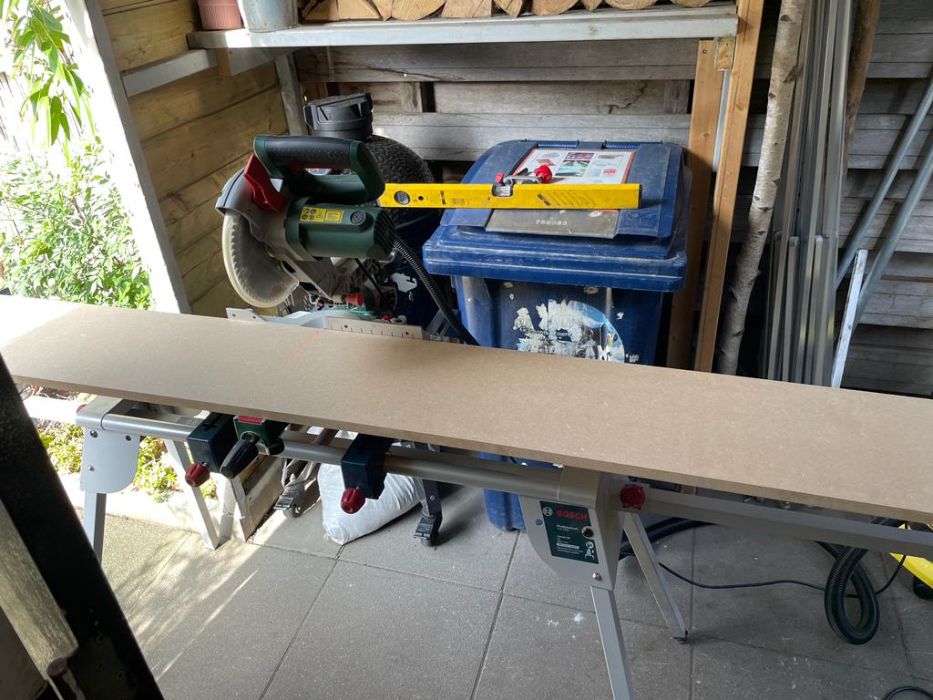 Het materiaal waarvan we de kast hebben gemaakt is MDF. Heel erg fijn om zulke meubels van te maken. Het is makkelijk om mee te werken, goed te zagen en makkelijk te schilderen later.