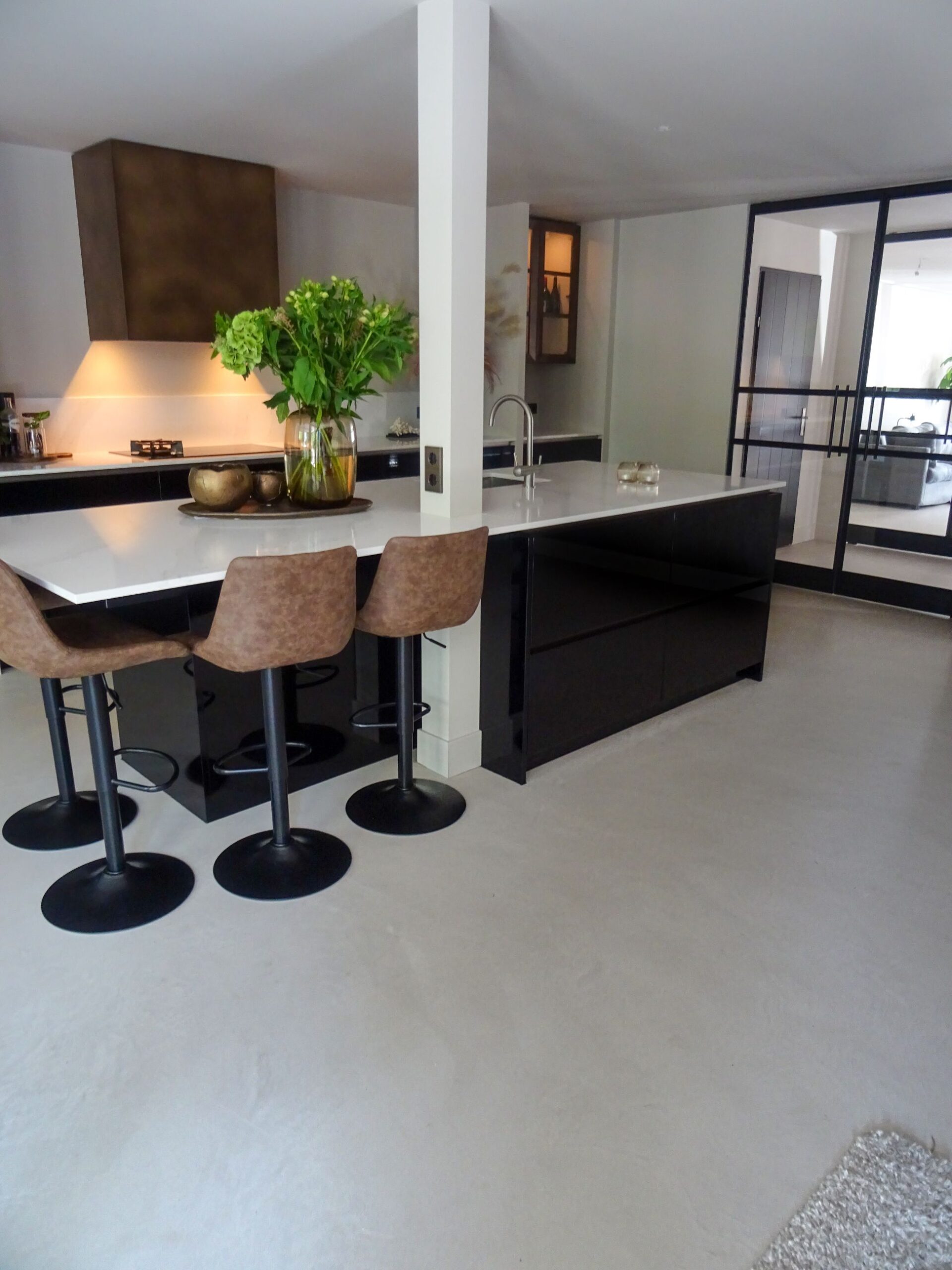 Het is de sterkste vloer uit het assortiment van Puurvloeren. Je kunt er met een schaar op krassen en nog zie je er niets van terug. Wat materiaal betreft bestaat concrete uit natuurlijke en hoogwaardige materialen. Eenmaal op de vloer of op de wanden, maakt het de oppervlakte waterdicht. Niets komt er meer doorheen, dus ook geen vuil of vocht. Het beperkte onderhoud, de samenstelling van het materiaal en de levensduur van de vloer, maakt het een goede duurzame optie. Ideaal is deze vloer voor de badkamer of keuken. De vloer wordt naadloos met de hand gesmeerd wat zorgt voor een prachtige resultaat.