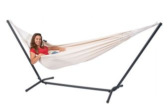 Een hangmat met standaard, heerlijk om in te relaxen. Heb je ook zo’n zin de zomer en zie je jezelf al liggen in een hangmat met een heerlijk drankje?