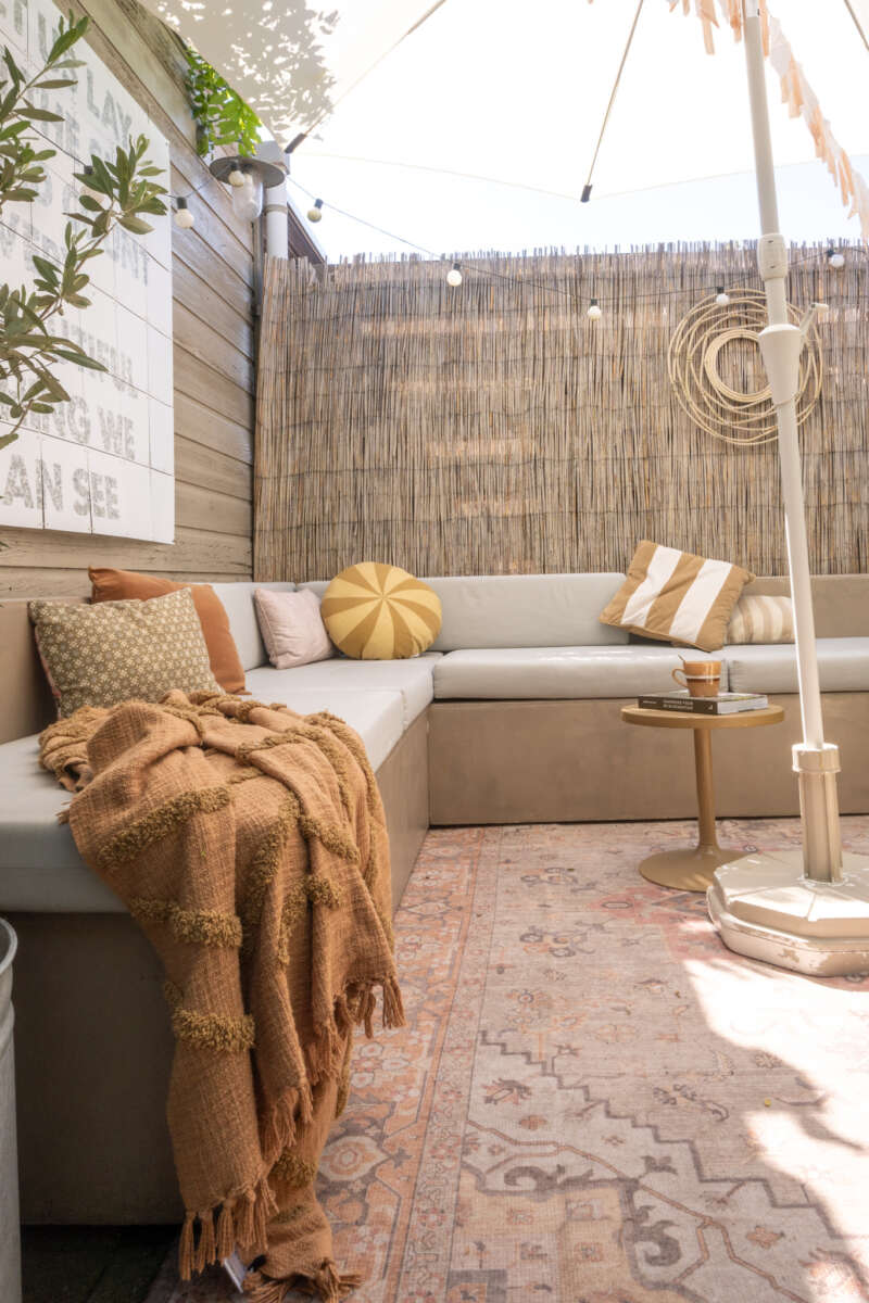Ook hier is een kleurenpalet/moodboard een hele fijne houvast om aan de gang te gaan met styling. Je neemt de kleurtjes mee naar de winkel en kiest op basis van de kleuren de printjes uit. Een buitenkleed kan dan ook mooi met een leuke print worden uitgekozen. Juist voor buiten is dat echt heel gezellig.