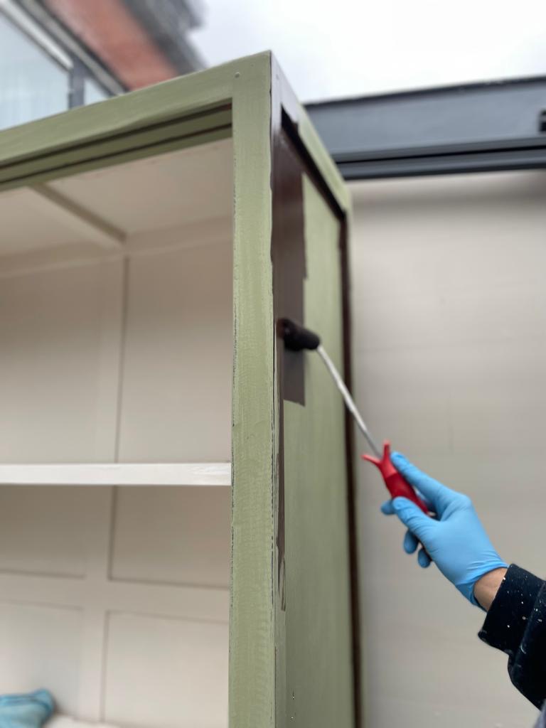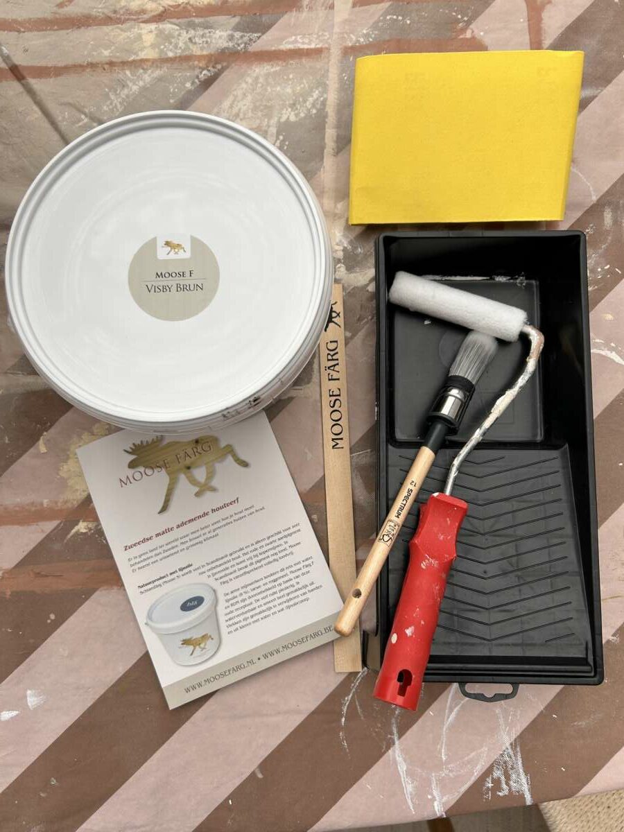 Kast verven met verf van Moose Färg. In deze blog deel ik mijn ervaringen met de verf van Moose Färg. Als je vaker een blog van mij hebt gelezen dat weet je inmiddels dat ik heel graag verf in huis. Alles in ons huis is misschien al meerdere keren geverfd of staat nog op mijn to do list ;). Onze woonstijl is warm. En omdat er steeds meer bruintinten in ons huis komen wilde ik de kast in de tuinkamer ook een nieuw kleurtje gaan geven. Moose Färg, duurzame Zweedse houtverf, vroeg of ik hun verf wilde testen dus 1 + 1 werd 2 en zodoende ging ik lekker aan de slag met de verf voor de kast. De verf is duurzaam, ruikt niet (wat ik echt heel erg fijn vind) en is zowel voor binnen- als buiten projecten verkrijgbaar. Ik heb hier de Moose F verf gebruikt. Dit is een buitenverf, een dekkende beits maar daarom geschikt voor deze ruimte. De tuinkamer is toch “officieel” buiten dus dan is het erg fijn als je goede verf gebruikt die wel tegen een stootje of vocht kan.