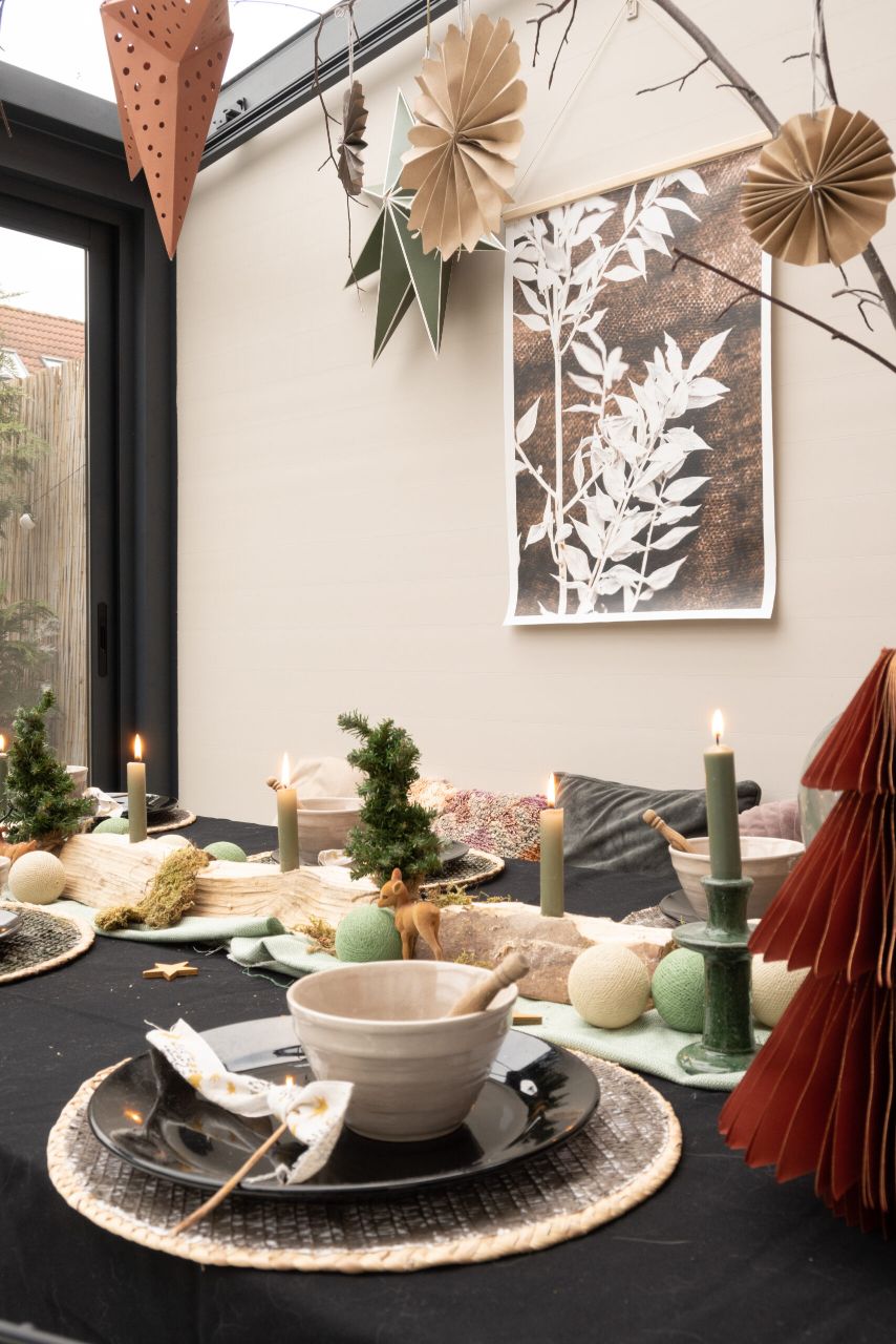 Zo krijg je een heerlijk knusse sfeer, kerstig maar niet té. En alle items zijn meerdere keren te gebruiken. Dat maakt het zo leuk. Een originele kersttafel en helemaal low budget 🙂