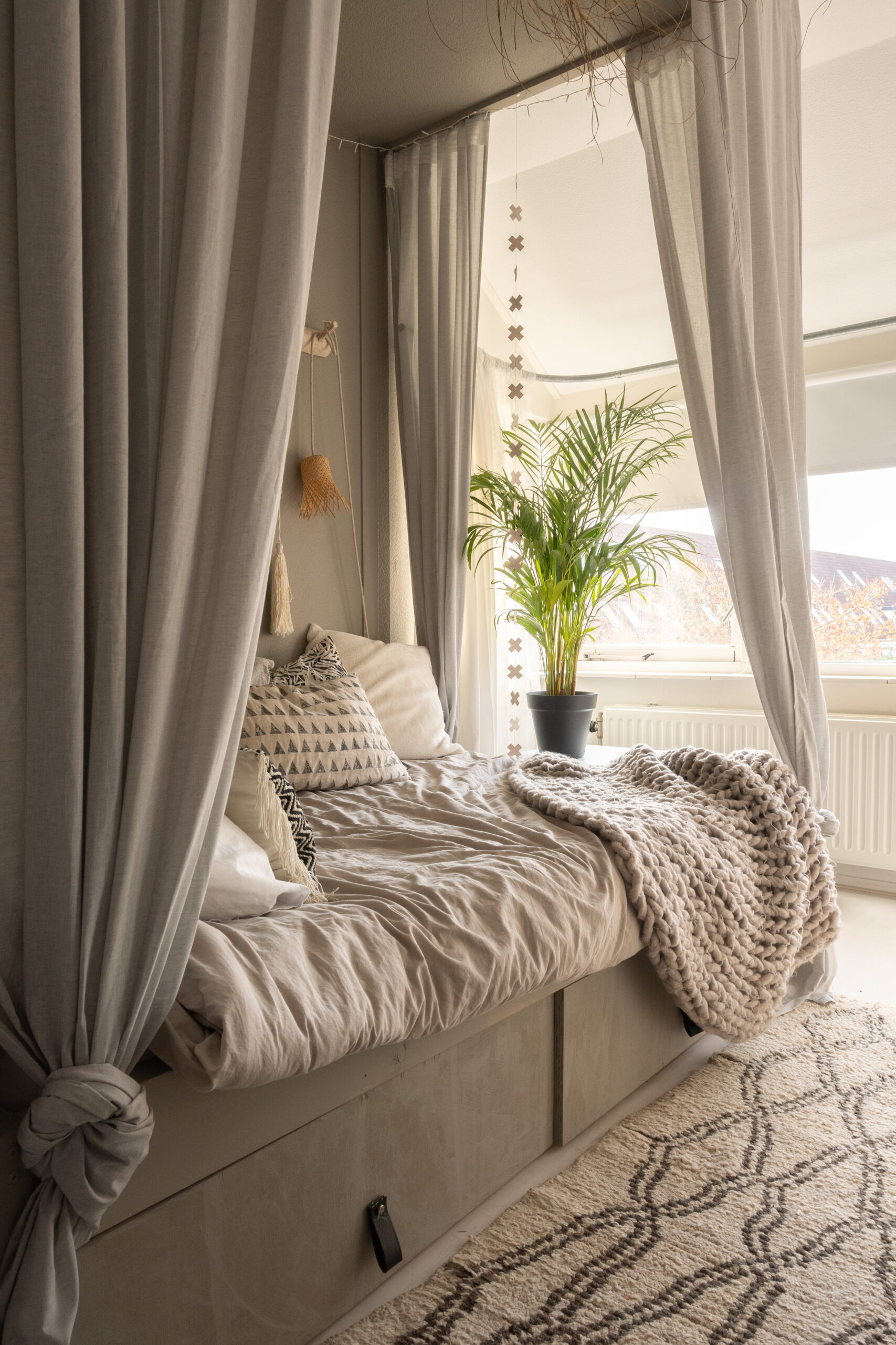 Het past helemaal in de Japandi style trend die je nu veel ziet. Niet te veel poespas en hele rustige kleuren. En met grijs kun je dit heel mooi bereiken. Zeker in de slaapkamer waar rust heel erg belangrijk is.