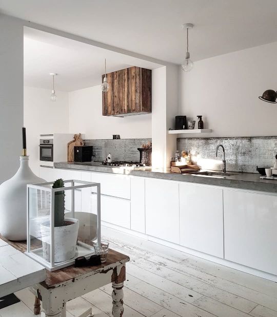 Op Instagram en Pinterest doe ik echt dagelijks inspiratie op. Daar zag ik een ombouw van een schouw/afzuigkap van sloophout. Gewoon recht. Zie de foto van @thuisbijsuus. Prachtig toch?