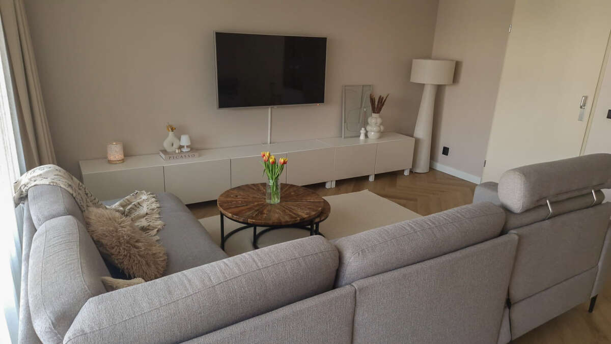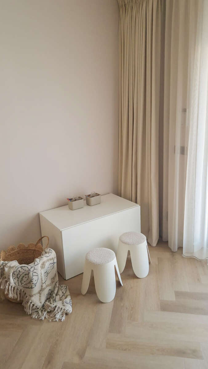 De bewoners hadden een aantal wensen. Een fijne rustige sfeer in de Japandi style, licht maar toch warm en gezellig. Ook een hoekje voor de kinderen is een must. De bank blijft dus de sfeer en de stijl moet hier wel bij aansluiten.
